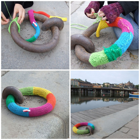 Girovagando in rete mi sono imbattuta in moltissime creazioni a uncinetto che rendono colorato il paesaggio urbano.