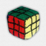 Hand made crochet hook rubik cube box.  The inside of the box is covered with colored felt.