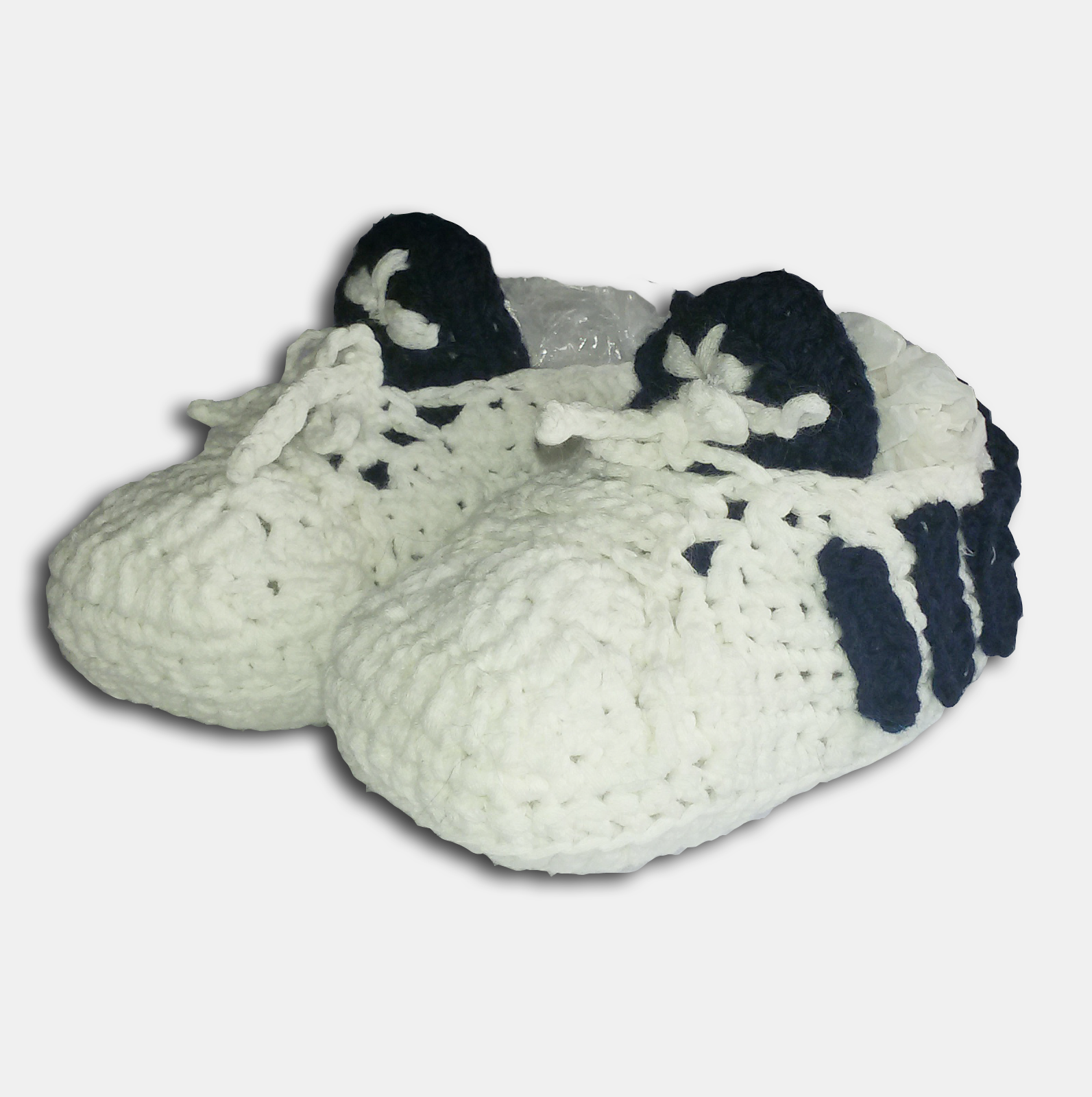Scarpette di cotone per neonati fatte a mano a uncinetto colore viola.